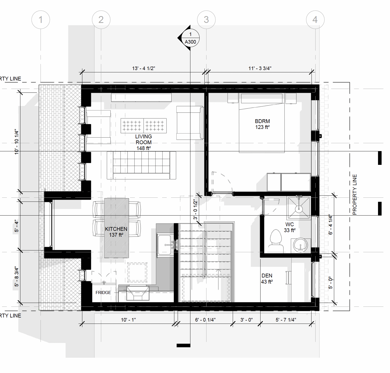 This 3 bedroom Laneway home design shows how you can have a large comfortable home in your backyard! Making excellent use of space by tucking away bedrooms on the main floor and concentrating light filled living space on the second floor this cozy and functional living space is a full-on family home tucked away in a west-end tree filled lane.